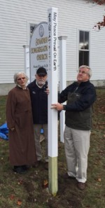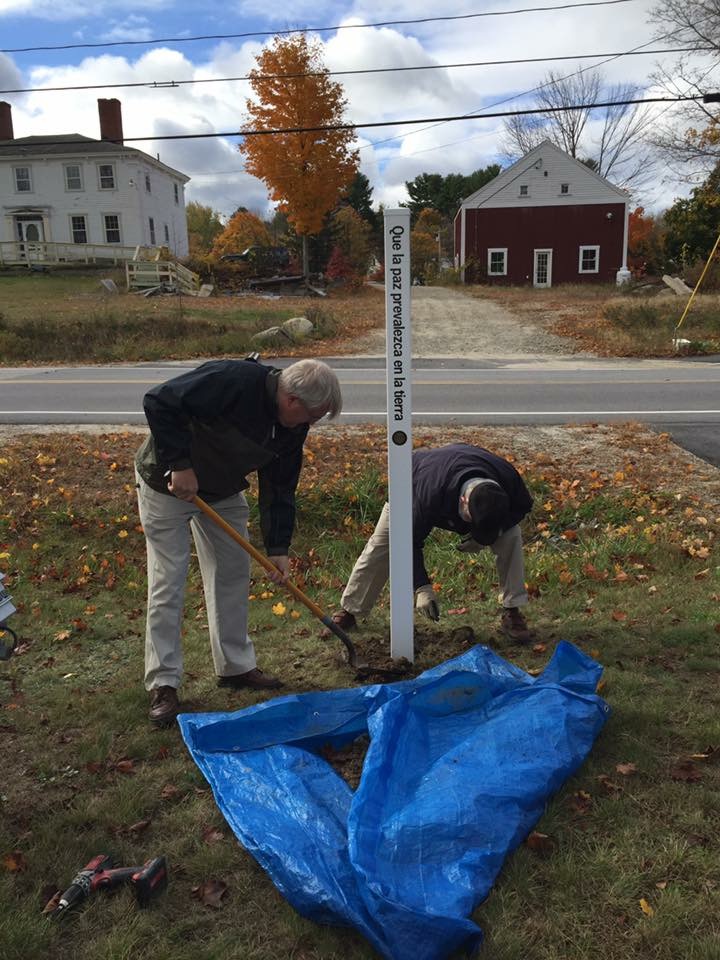 Our church thrives when individuals and groups from within the congregation and community volunteer their time to move projects forward. At Standish Congregational Church these projects range from preparing and serving monthly meals to planting a peace pole (as in photograph). The gentlemen in the picture, members of our Board of Trustees, did the actual planting of the Peace Pole in October 2016, after it had been purchased on the initiative of volunteers in our Christian Education program.